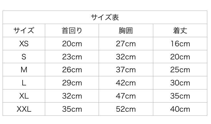 【 首回り・胸囲・着丈 】
